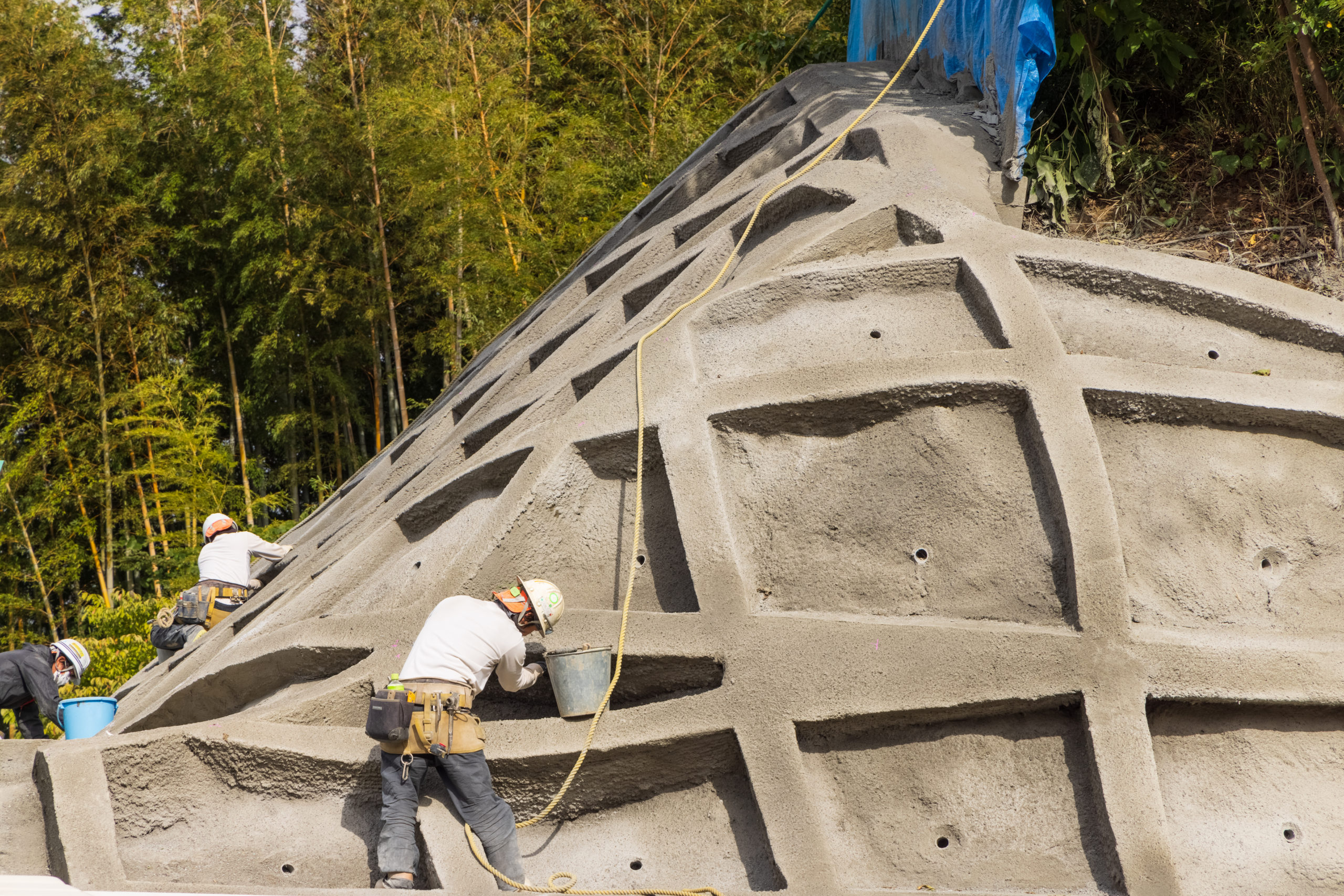 「法面」とは、道路や住宅地を整備する際に整備する人工的な斜面のことです。そのままでは風化や浸食によって土砂崩れが起こりやすい状態の斜面を、法枠工・アンカー工・モルタル吹き付けなどによって固定化します。周辺にお住まいの方々が安心して暮らすために、必要不可欠な工事です。